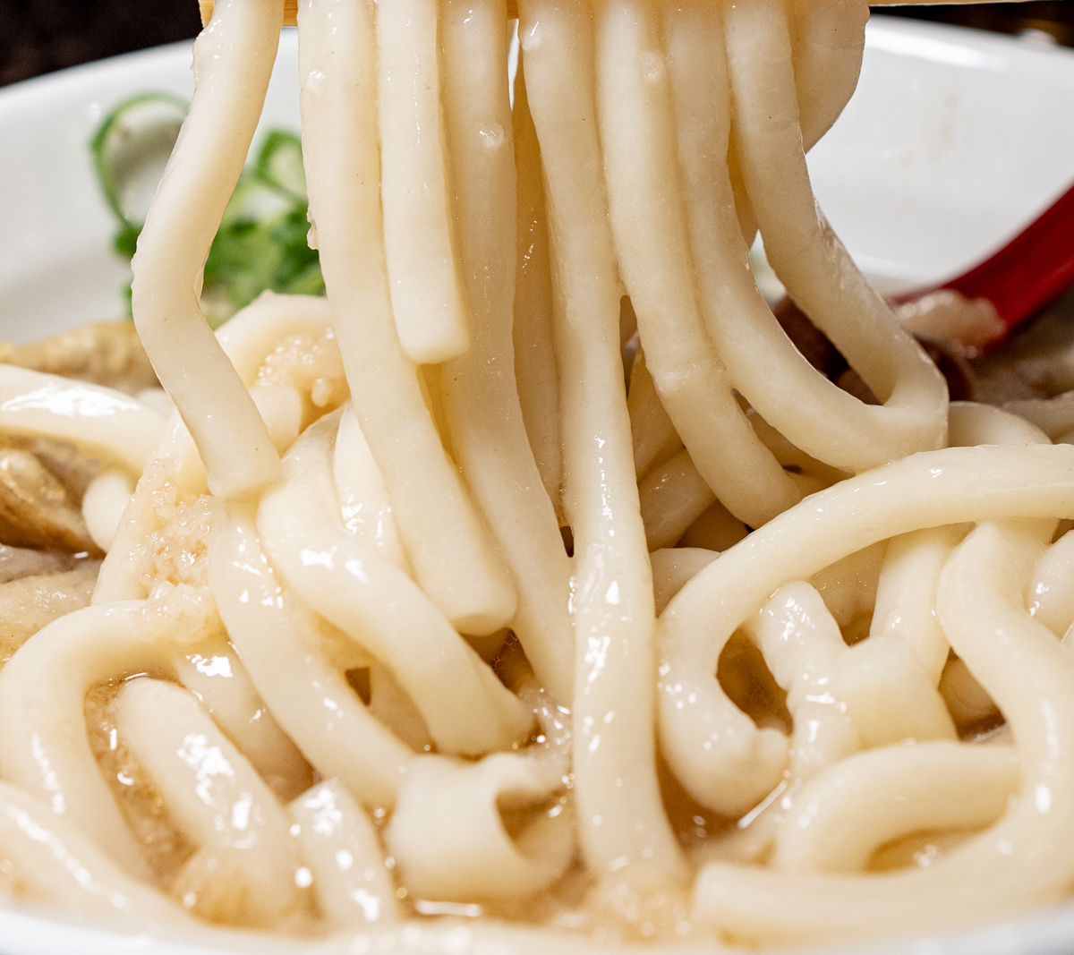 そして麺だ。表面の光の反射のしかたが、明らかに讃岐うどんとは違う。