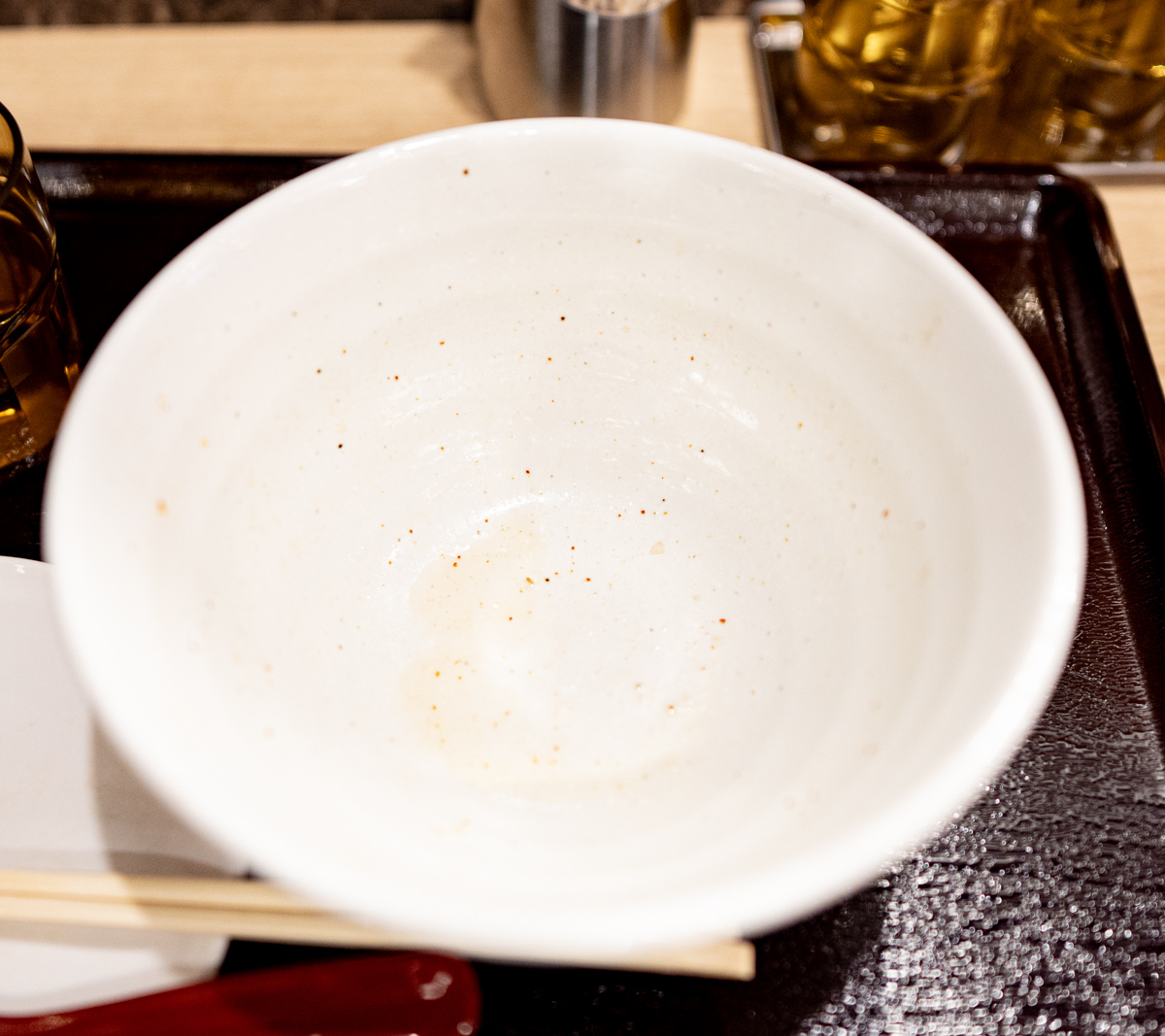 このスープは美味いな。気付いたら飲み干していた。因幡の武器は、テクニカルな2形態のゴボウの天ぷらと、このスープかもしれない。