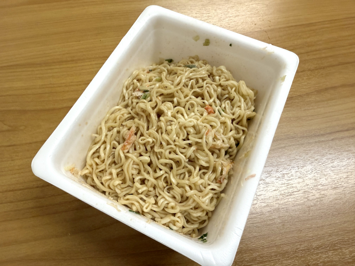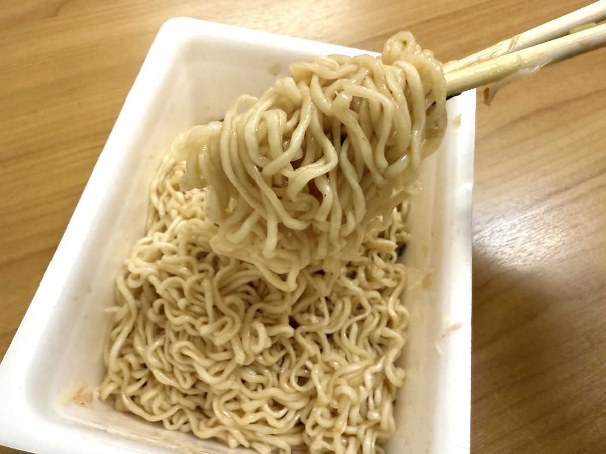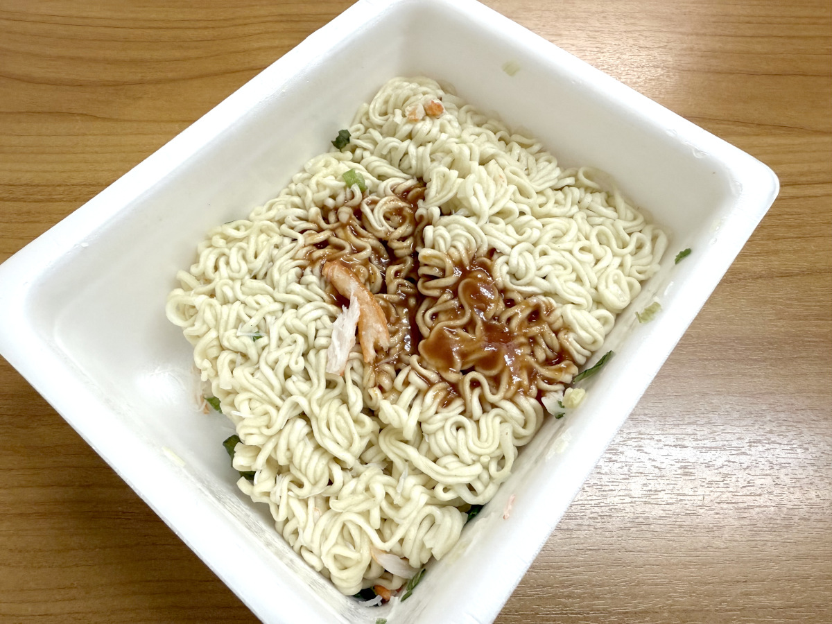 作り方は通常のペヤングと同様で、湯切りをしたらソースを絡めれば完成。特徴的だったのはソースを投入した瞬間から、湯気と共にカニの香りが爆発的に広がったことだ。