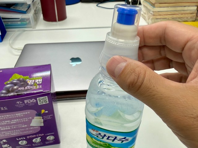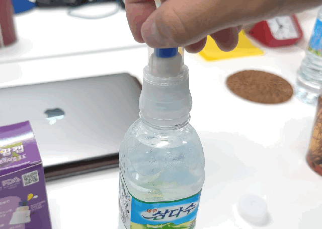 ではさっそく買ってきたミネラルウォーター「SamDaSoo(三多水)」のキャップを付け替えて……