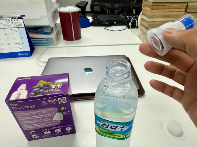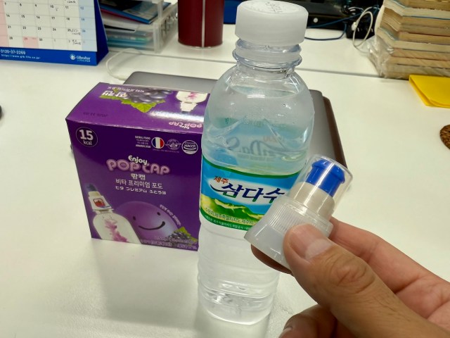 韓国で爆発的にヒットしている “新しいドリンク” が日本に上陸した。その名も「POPCAP(ポップキャップ)」。ペットボトルのキャップ部分を付け替えるだけで、ミネラルウォーターが一瞬でカラフルなフレーバードリンクに変身するらしい。