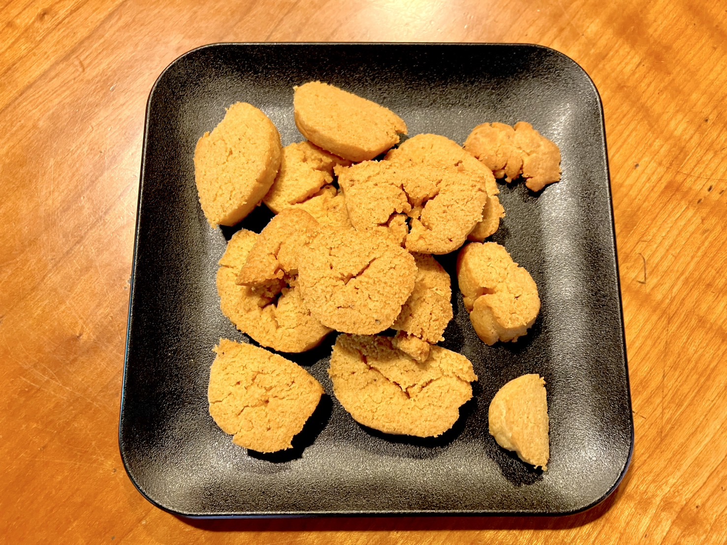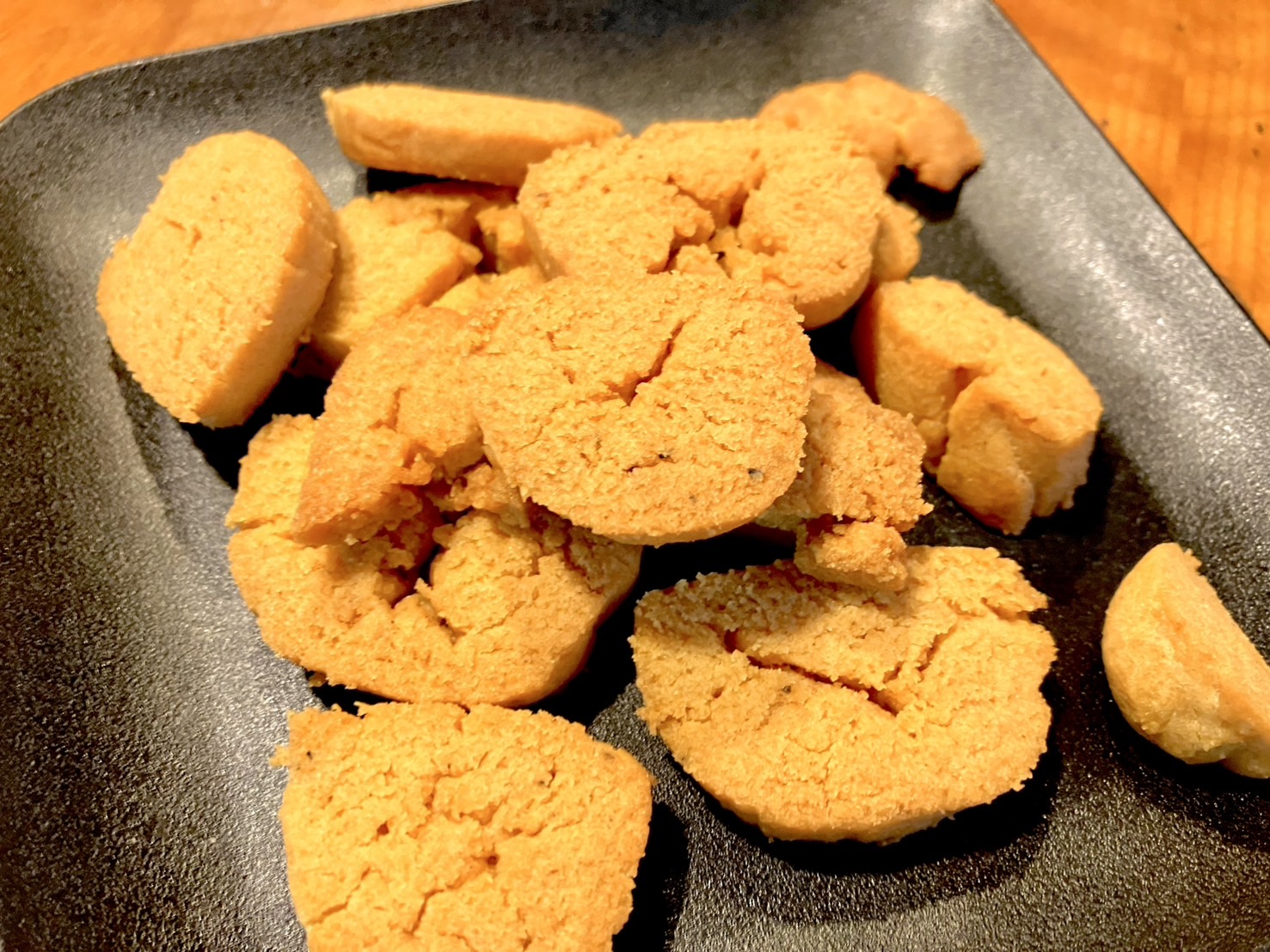 オーブンから出した時に「ジューッ」という音がしていたり、鶏肉を焼いた時のようなジューシーな香りがしたりしているけれど、見た目は完全にサクサクのクッキーだ。