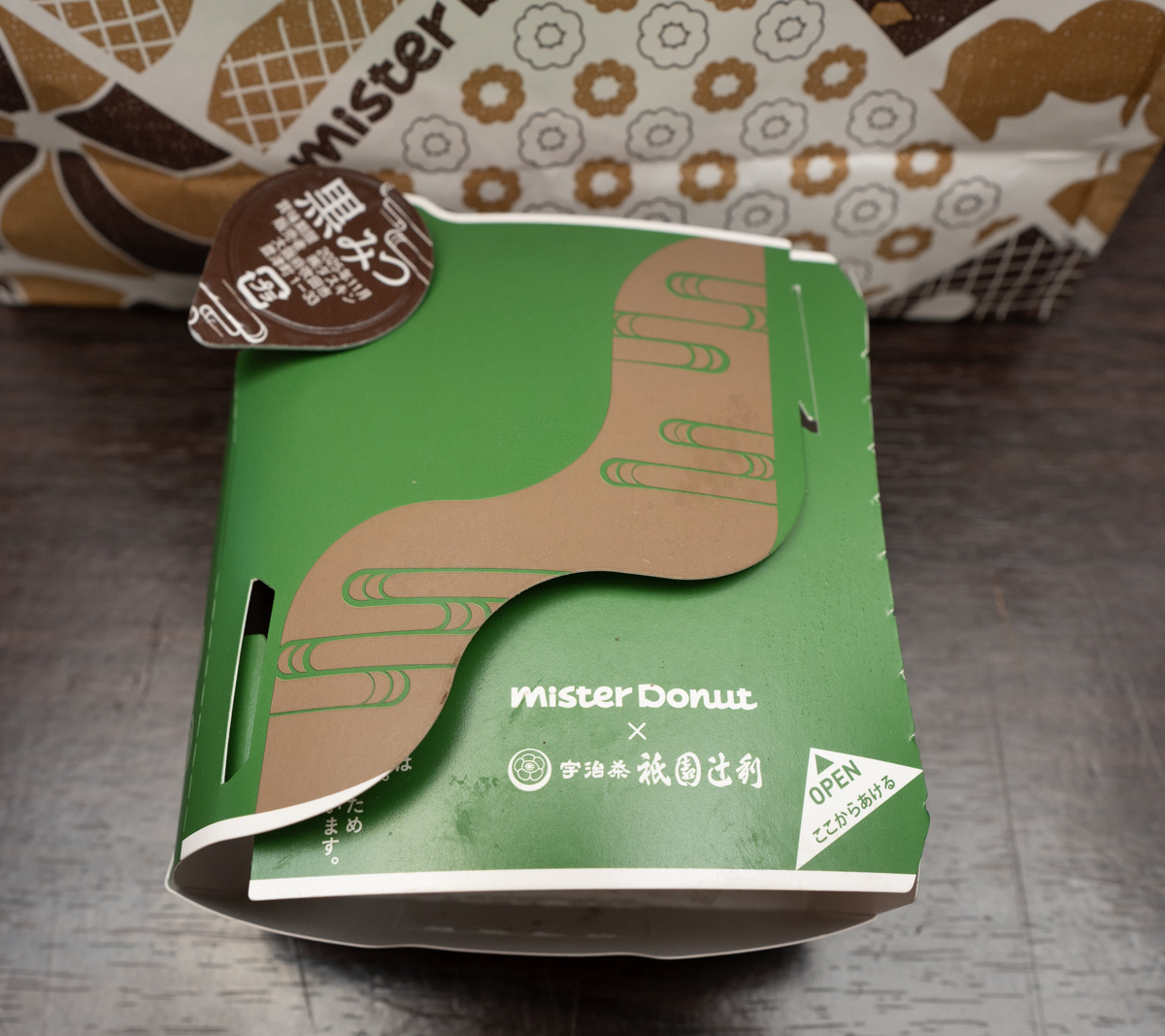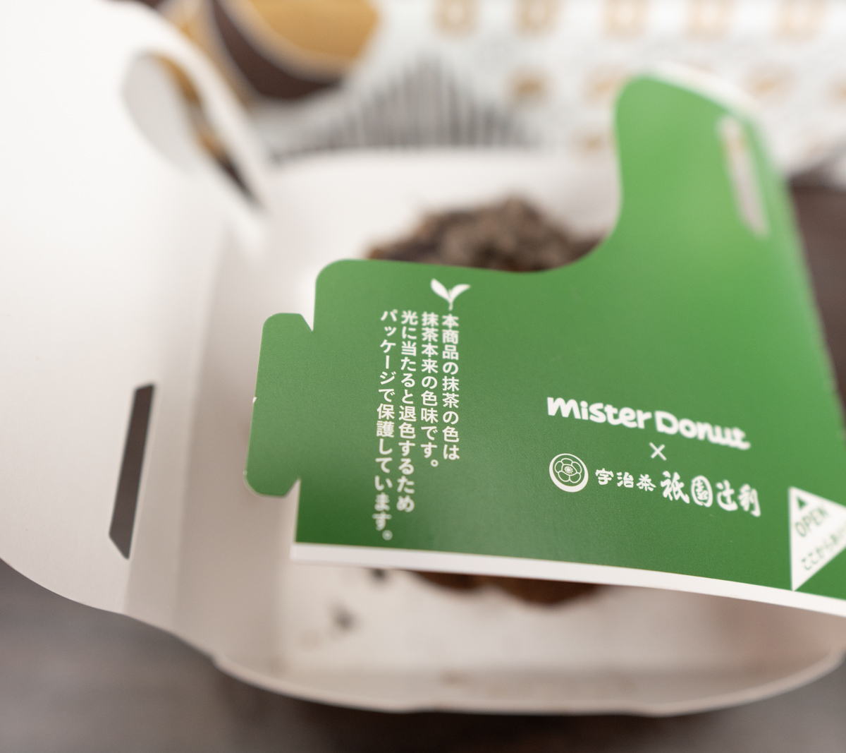 続いては「宇治ほうじ茶づくし」だ。外装の時点で、これがスペシャルなドーナツであることは一目瞭然。