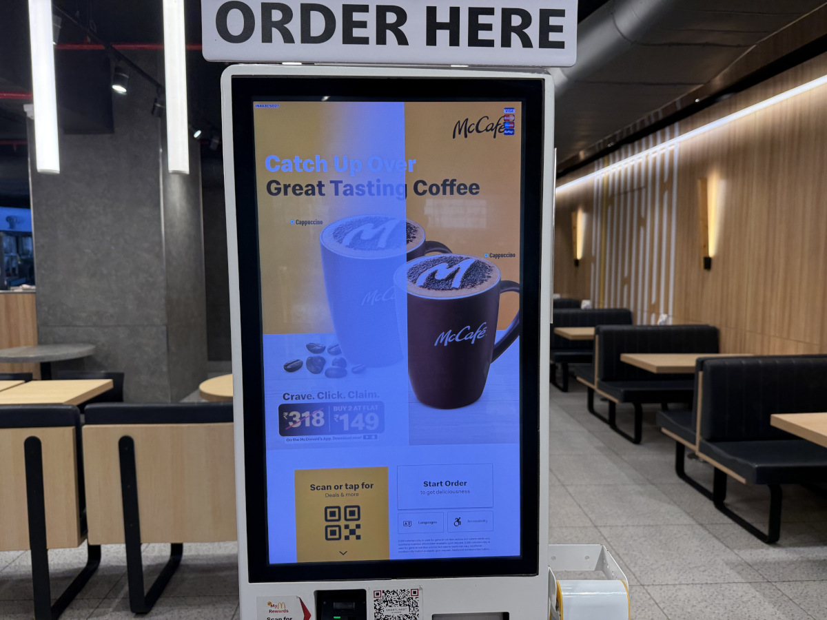 開店直後のマックにはお客さんが1人もおらず、何なら掃除の最中。そこはかとなく「まだ早いだろ」という店員さんの雰囲気を感じ取ったが、そこはごめんなさい。そのままパネルでインドっぽいメニューをいくつか注文した。