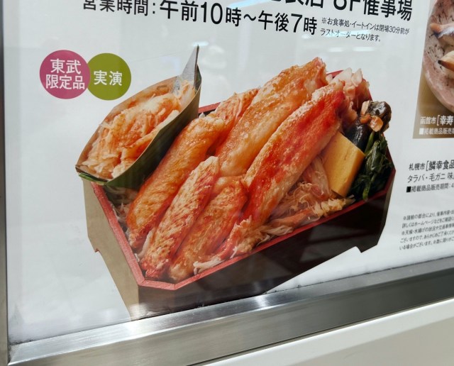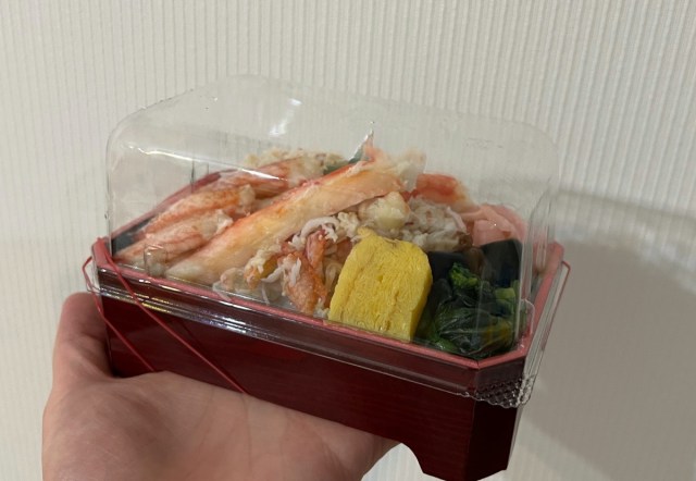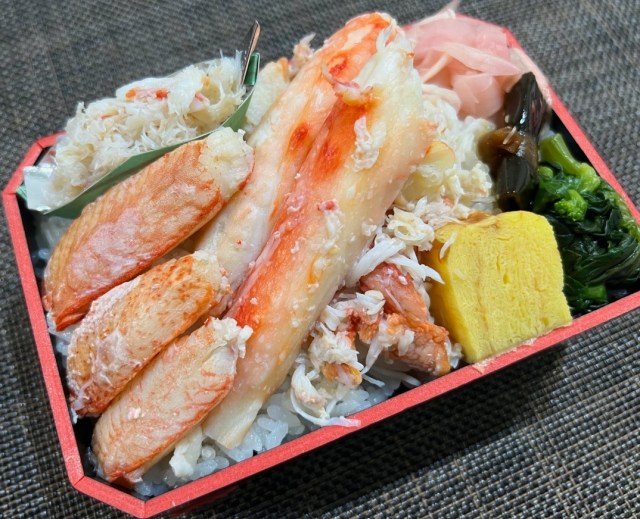 ▼カニの弁当(3240円)も販売されていた。このカニも盛ってるだろうと思ったが……