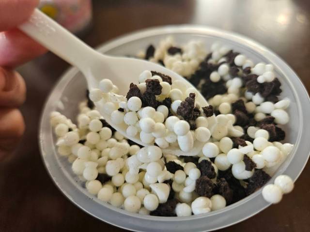 なんだかんだで、約20数年ぶりの「ディッピンドッツ」。想像よりも遥かに美味しくて感動してしまった。それからベトベト感がほとんどなく、スッキリとして食べやすかったことも評価したいポイントだ。