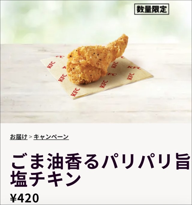 よく読むとこのクーポンは、「KFCデリバリー」利用の際に1回のみ使えるらしい。通常税込1100円の『オリジナルチキン』3ピースが、なんと半額の税込550円になるんだとか。