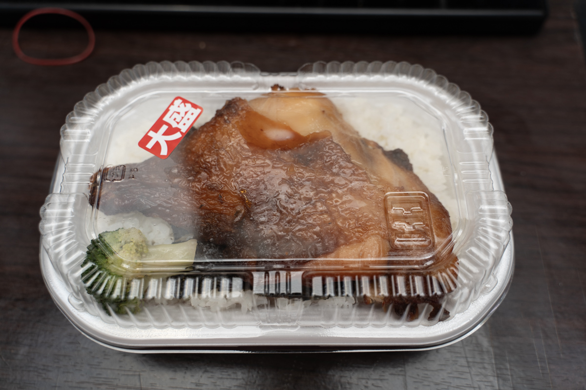 でもそれなら、+110円で1食分程度の白米が付いてくる弁当を買うのも悪くない気がする。最近はコンビニの塩にぎりも140円とかするし。なお、大盛のライス量はチキンの量に対してちょうどいい感じだった。