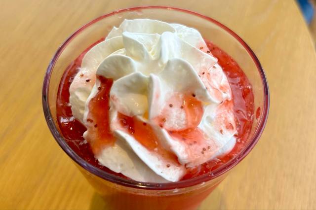 なんでも、ホイップクリームの上にストロベリー果肉ソースとジュレを、さらにかけてくれるのだという。お値段も店内利用で790円と、スペシャルだ。