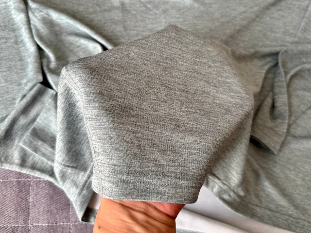 私が購入したのは「グレー杢のLLサイズ」。肌に当たることでヒンヤリするため、全体的にサイズはちょっと小さめかも。体型が気になる方は1サイズ大きいものを選ぶと良いかもしれない。