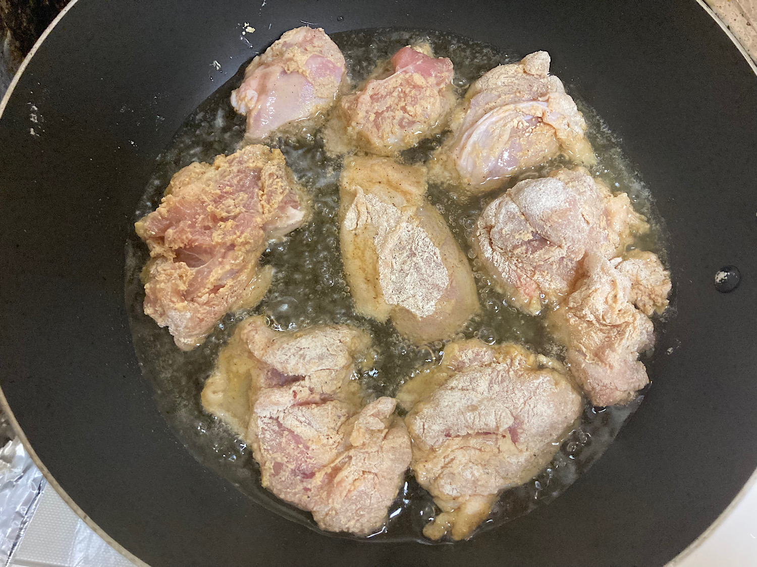 「30分以上」のところを半日放置してしまったので味の濃さが若干心配だったが、大きめの個体とかはむしろアッサリ。昼前に漬けて夜揚げるくらいでちょうど良かったみたいだ。