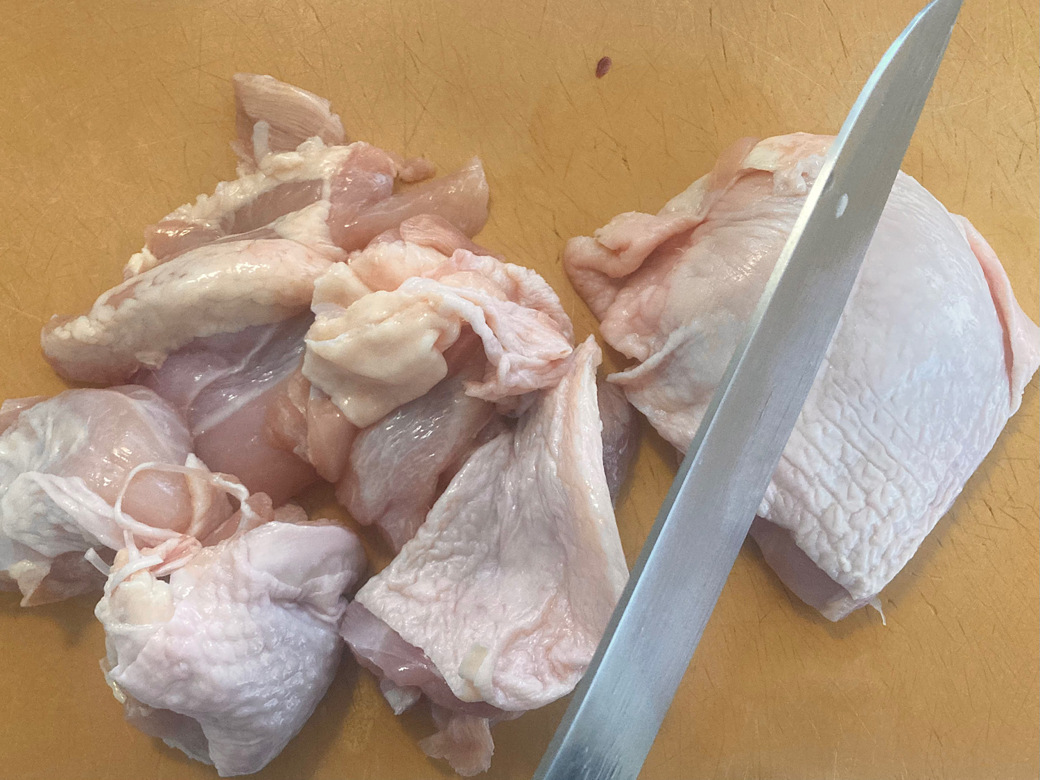 さて、まずは規定量400gの鶏肉を用意。特に部位の指定はなかったが、今回はもも肉にした。
