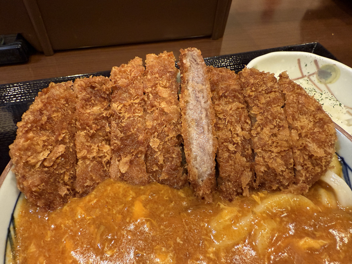 『牛カツトマたまカレーうどん』をそこまでオススメしない1つめの理由は「牛カツ」で、ポテンシャル的にも価格的にも「そこまでの価値あるのかな~?」というのが正直な感想だ。
