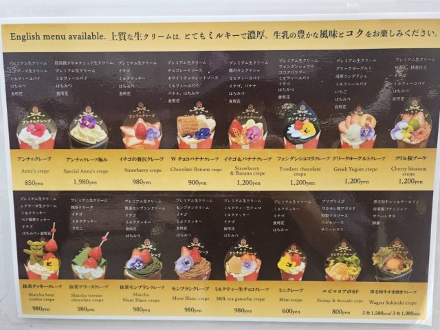 メニューを確認してみると、ゴージャスで艶やかなクレープが沢山。