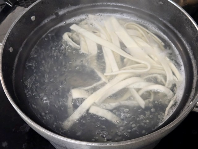 調理時間は10分ほど。ラーメンだと3分くらいのゆで時間で済むが、ラーほーは麺がほうとうなので8分茹でる必要があるみたい。一方でスープはお湯を注ぐだけで簡単にできるので、手間はほとんどかからない。