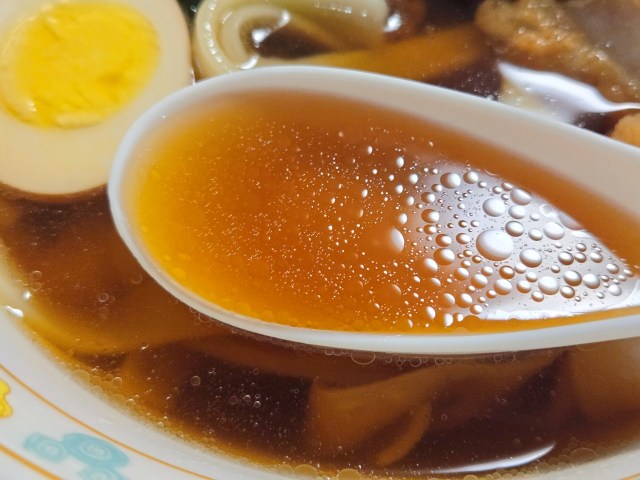 そしてスープは昔ながらの正統しょうゆラーメンのスープだ。シンプルだけどホッとする味~!