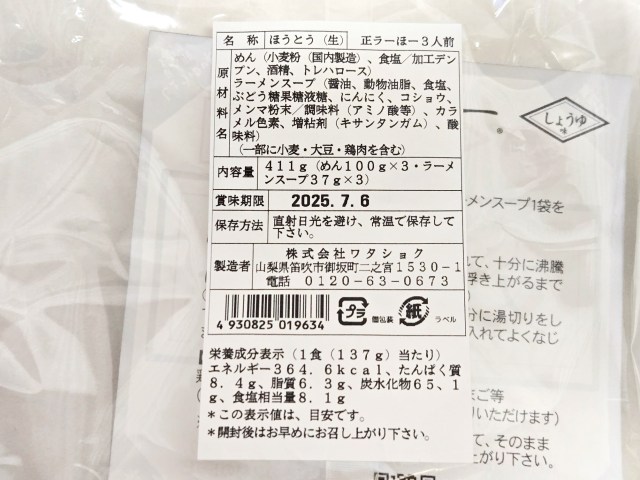 今回購入したのは、ほうとう作り研究所WATASYOKUが販売している、生麺タイプの『ラーほー(3食入り702円)』。