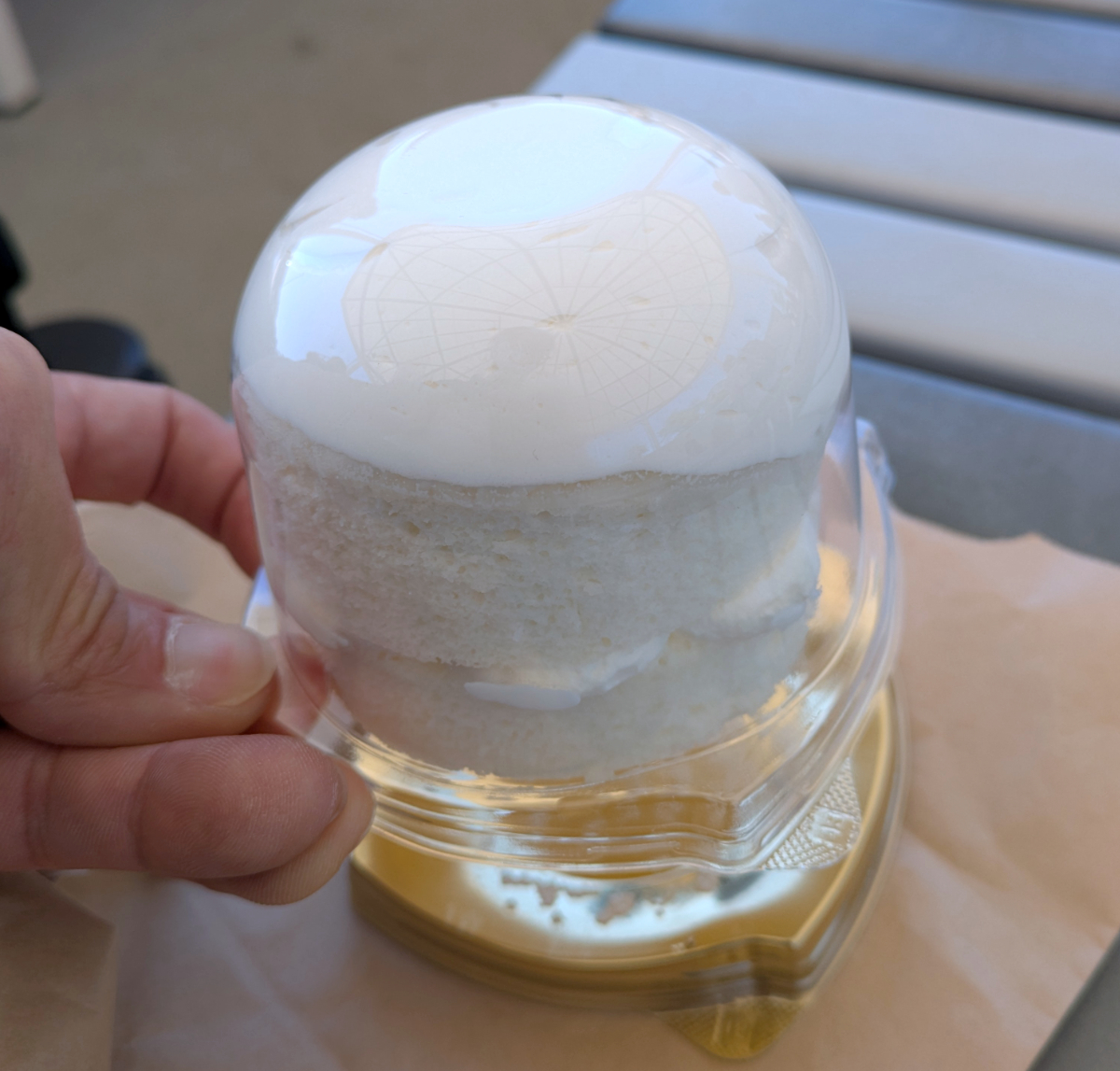 ミルクパンケーキサンドなんてのもあるな。クリーム3倍の1番デカいヤツ(税込1000円)にしたかったけど、それだけ売り切れだったので、2倍(税込680円)を買ってみた。これが今日の昼食だな。