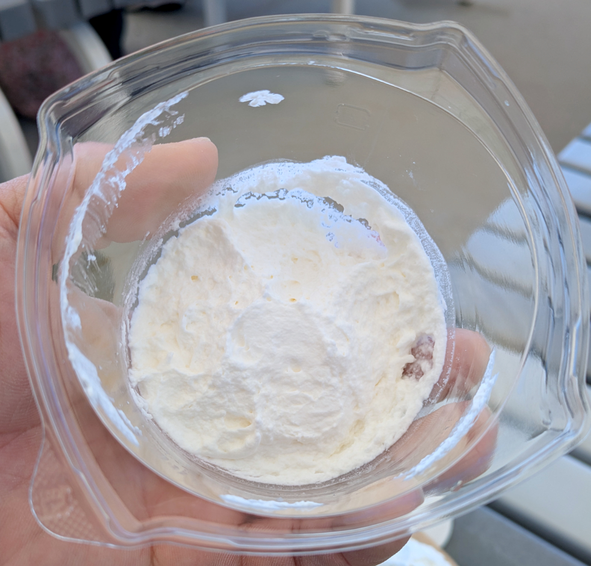 クリームはフタの中に残ったまま。分離してしまったのは残念だが、よく冷えている証だな、うん。