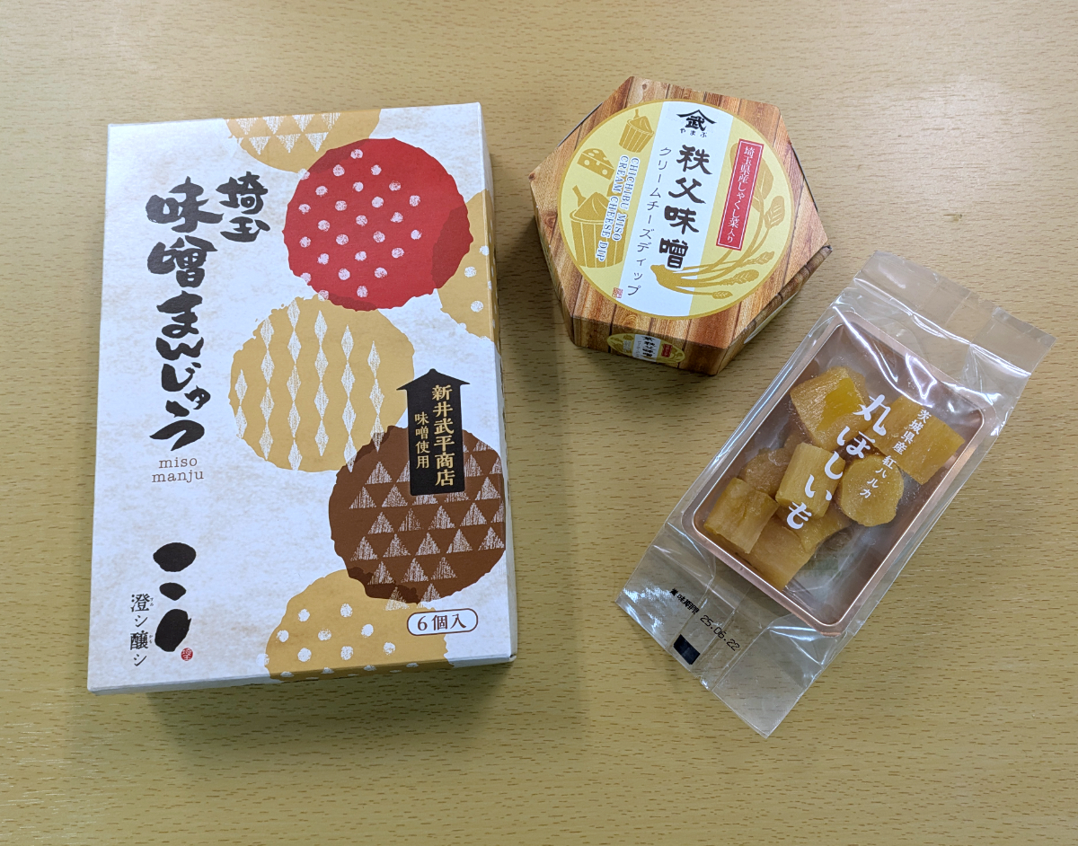 ▼埼玉にちなんだお土産を買ったつもりだったけど、茨城の干しいもも買ってしまっていた…