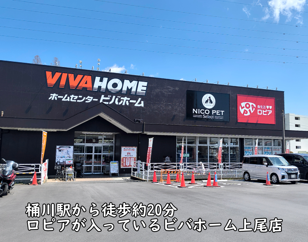 駅に到着した段階でバスに間に合わなかったとしたら、道の駅を諦めて、桶川駅から徒歩20分で行ける「ビバホーム上尾店」に行くのも良いだろう。