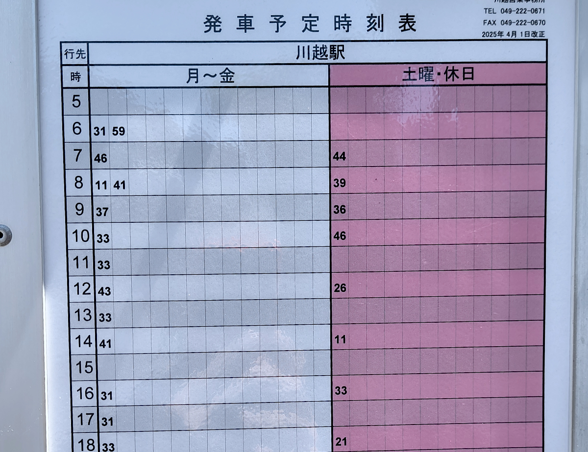バスは平日なら1時間に1本。土曜・休日なら2時間に1本しか来ない時間もある。
