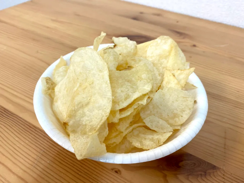 今回も馴染み深いものとして、これを選んでいる。スナックといえば、まず真っ先に浮かぶのがポテチだろう。