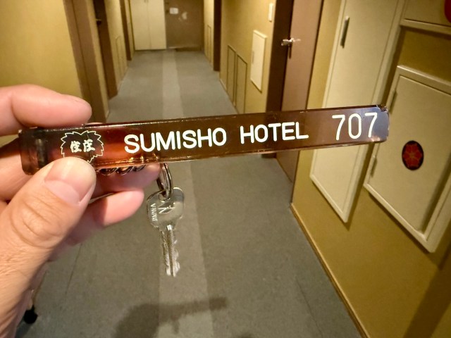 そんなこんなで、仕事を終えて20時にチェックイン。レトロなホテルキーを受け取って7階の客室へ。