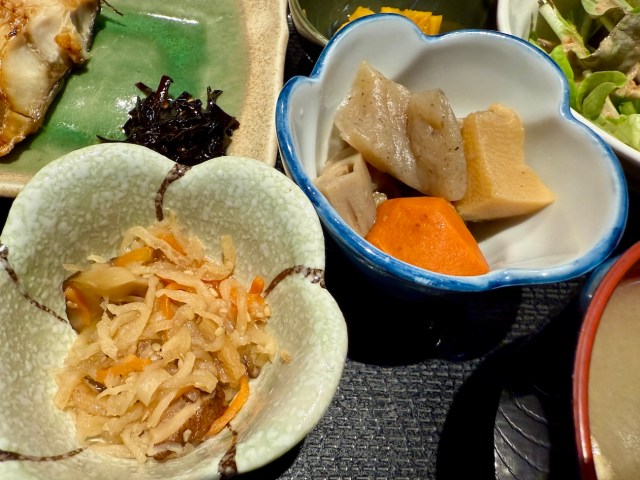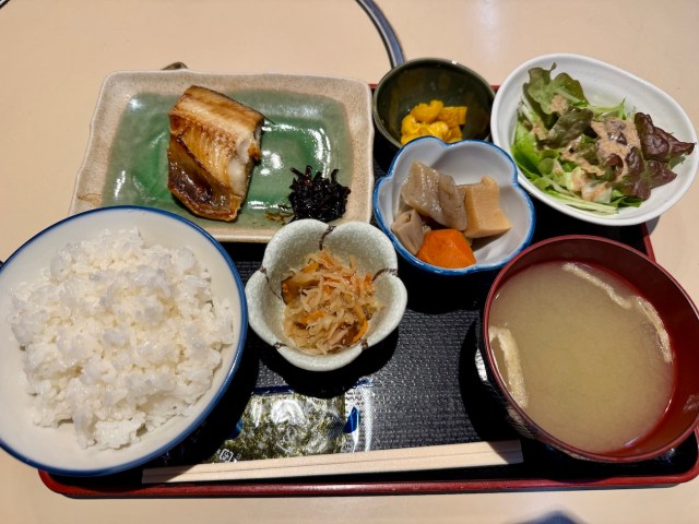 そして翌朝、朝風呂に入ってスッキリ目覚めた後に、宿に併設している「割烹すみしょう」で和朝食をいただいた。焼き魚も煮物もご飯をおかわりしたくなるほど美味しい。ザ・日本の朝食である。