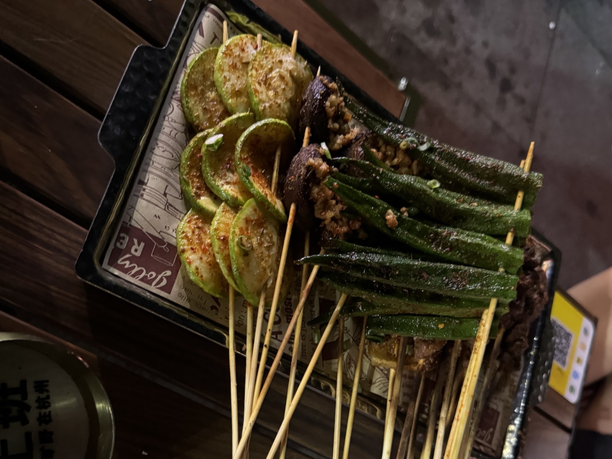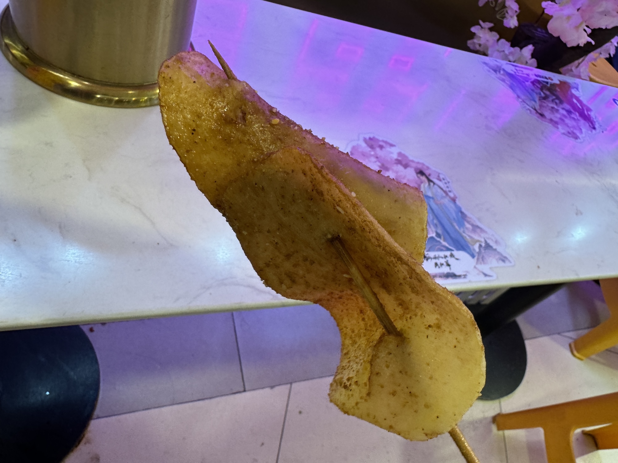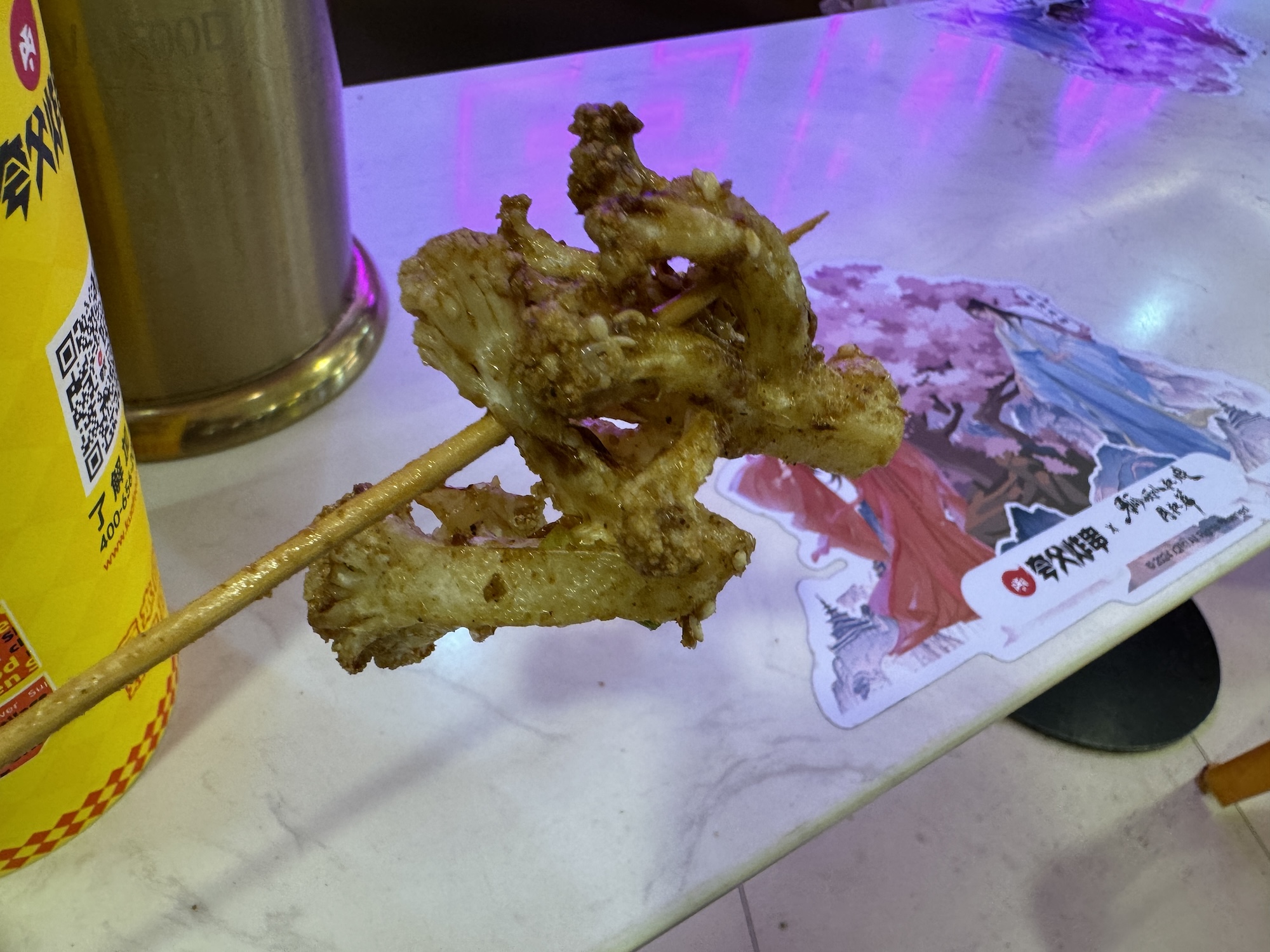 だんだん慣れてきたので、思い切って「小脇串抱え歩き食い」にもチャレンジしてみた。どう? 盛れてる? ナウい? 日本ではゴミ箱の少なさや公共マナーその他の問題からなかなか普及しづらいかもしれないが……中国へ来たらぜひ挑戦してみてほしい行事の1つである。アガるよ!!!
