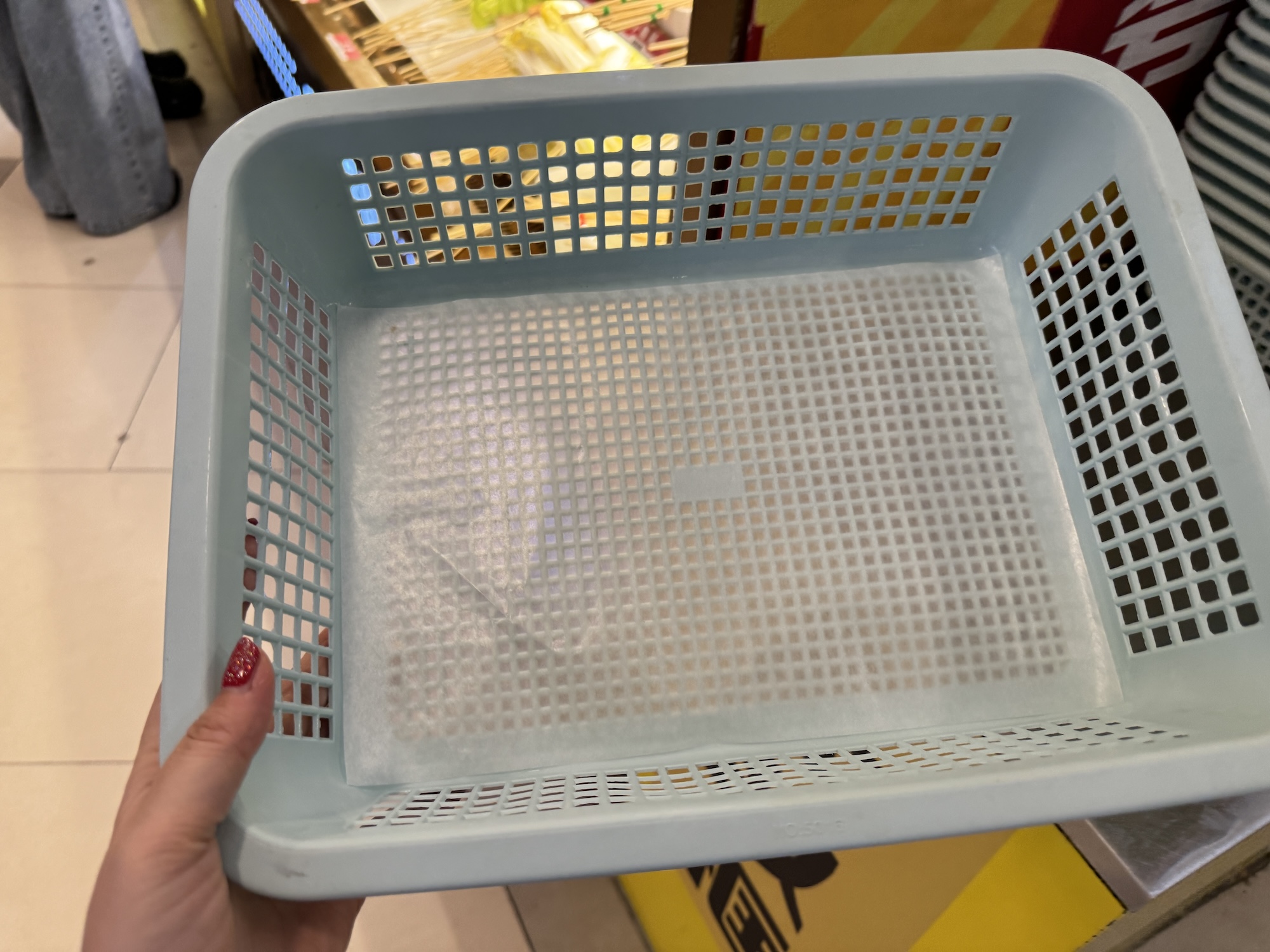 まずパン屋のトレイの要領でザルを手に持つ。トングは無い。