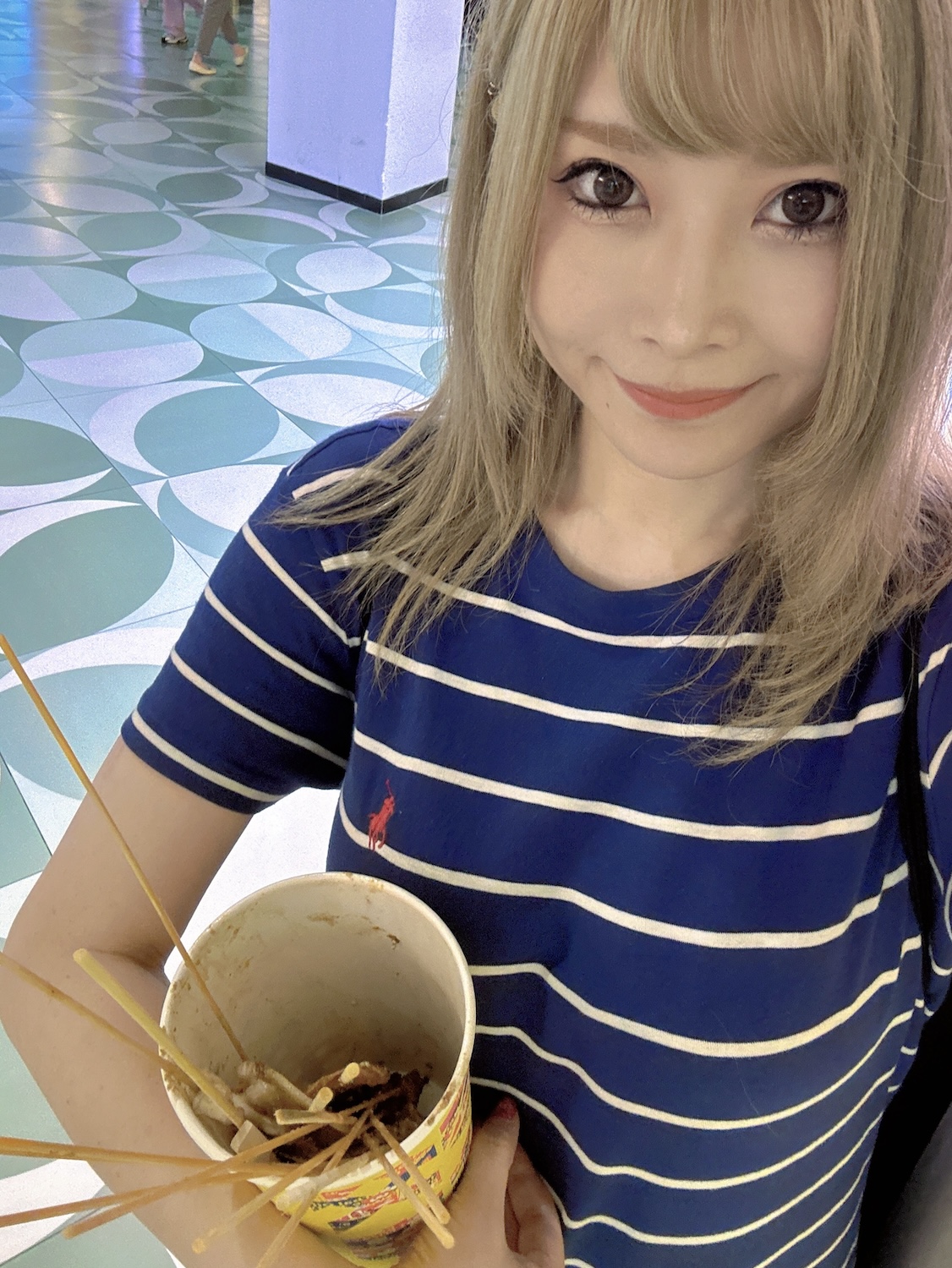 私にとって食べ歩きはまだハードルが高いので、謎にサイバーパンクなイートインスペースで食べていくことにする。
