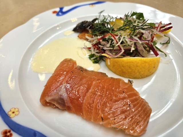 で、提供された料理がこちら『アトランティックサーモンのマリネ ~ディル風味~』