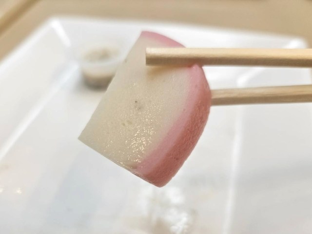手始めに、紅白かまぼこから食べてみよう。