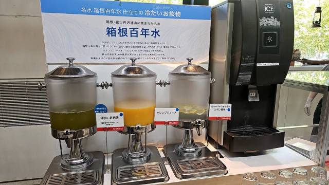▼ドリンクバーは「箱根百年水」という名水が使われている。かまぼこを作る際にも、こちらの水を使用するとのこと。