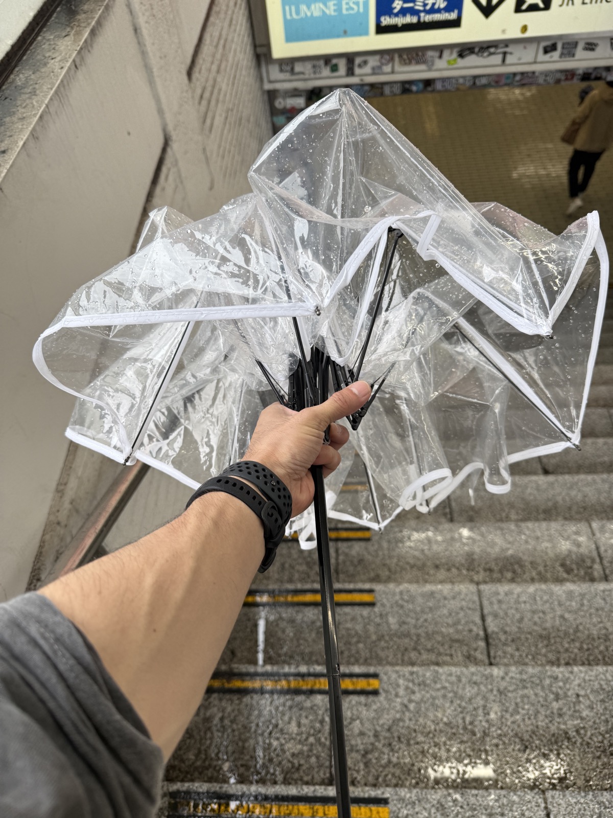 ちなみに帰宅後、もう2度と使わないと確信し、そっと不燃のゴミ箱に捨てた。普通に100円のビニ傘を買っておけばよかった。