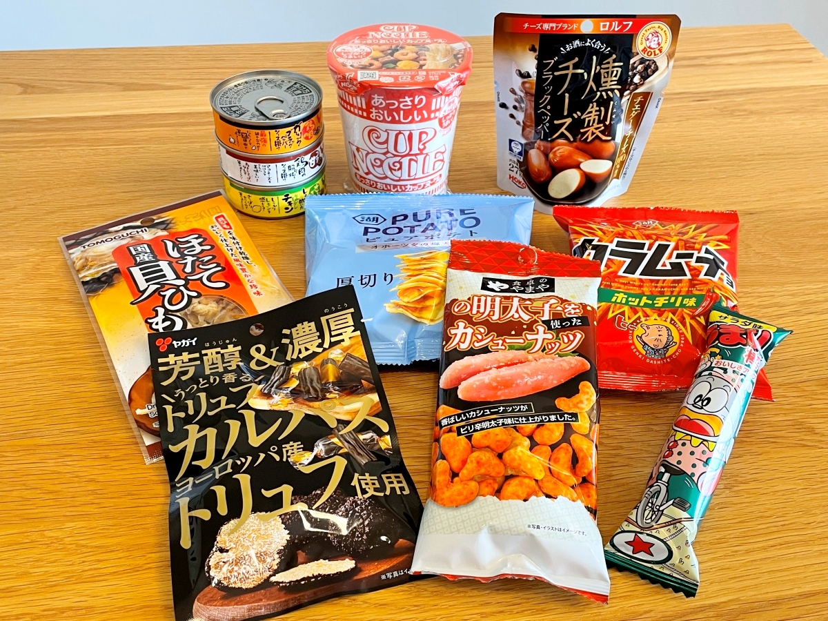 これだけの量をコンビニ等で買おうと思ったら、おそらく相当な金額になるはず。もちろん、すべて乾き物では興ざめも甚だしいので、パンチが効いた缶詰も3種選んでおいた。