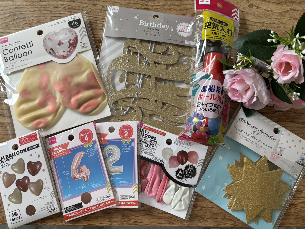 「今回ダイソーに行って1番「へえー! これ100円で買えるならいいなー!」と思ったのがバルーンとかガーランドの飾り。よく港区女子が「ホテルでサプライズお祝いしてもらいました」とかやってるけど、あれが自宅で1000円以内でできるのだ!