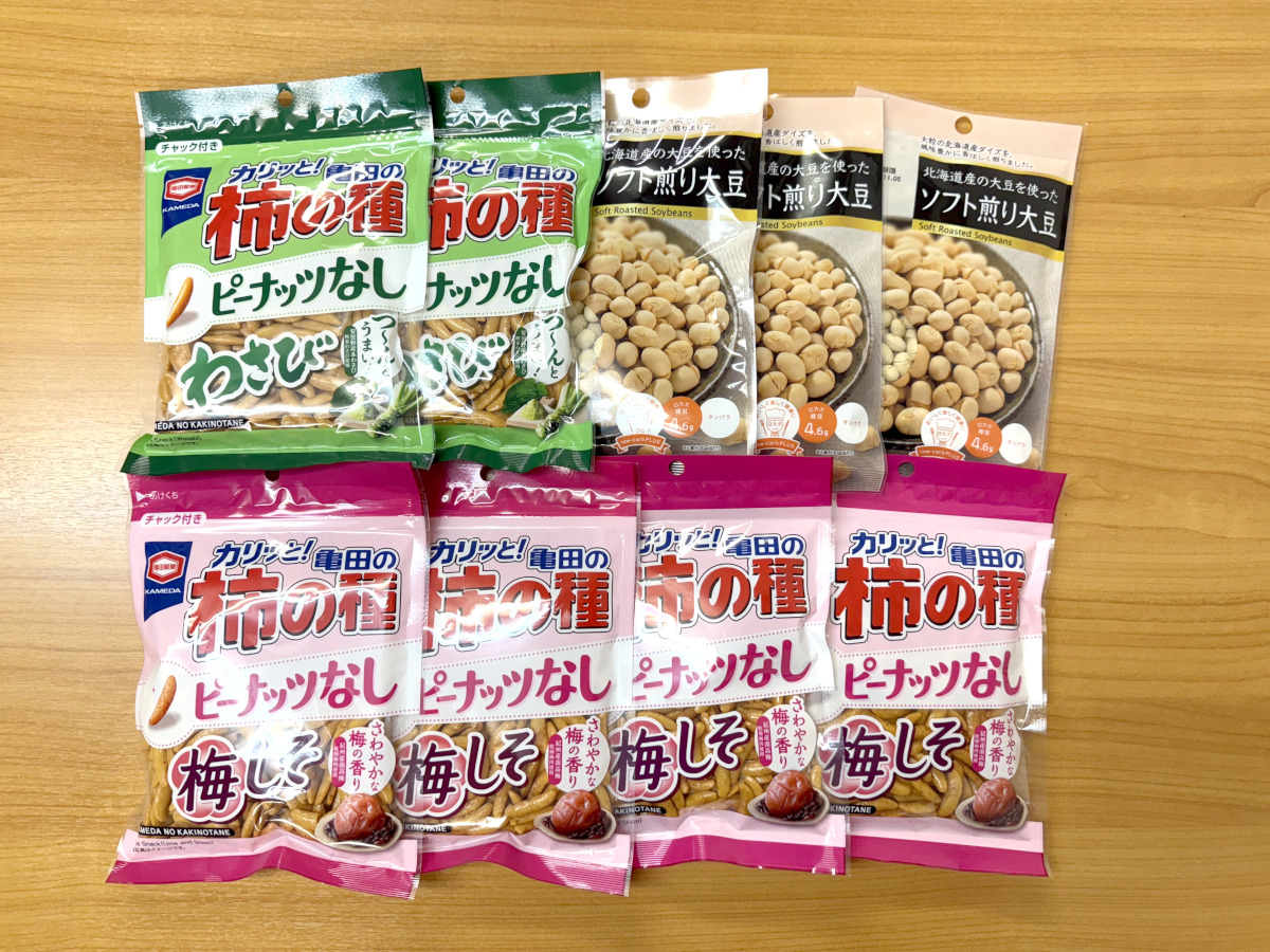 特にオススメしたいのは、梅味の柿の種。わさびはチェイサーに過ぎず “梅3・わさび1” くらいがバランスがいい。タンパク質を補う豆はそのまま食べても、柿の種と食べてもヨロシ。