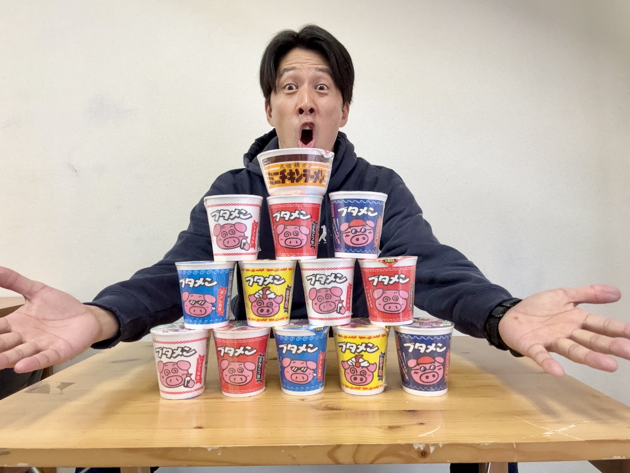 最近、不調な砂子間は「ブタメン」を軸にチョイス。チキンラーメンが後付けに見えなくもないが、今回こそ久々の優勝を狙いたい。