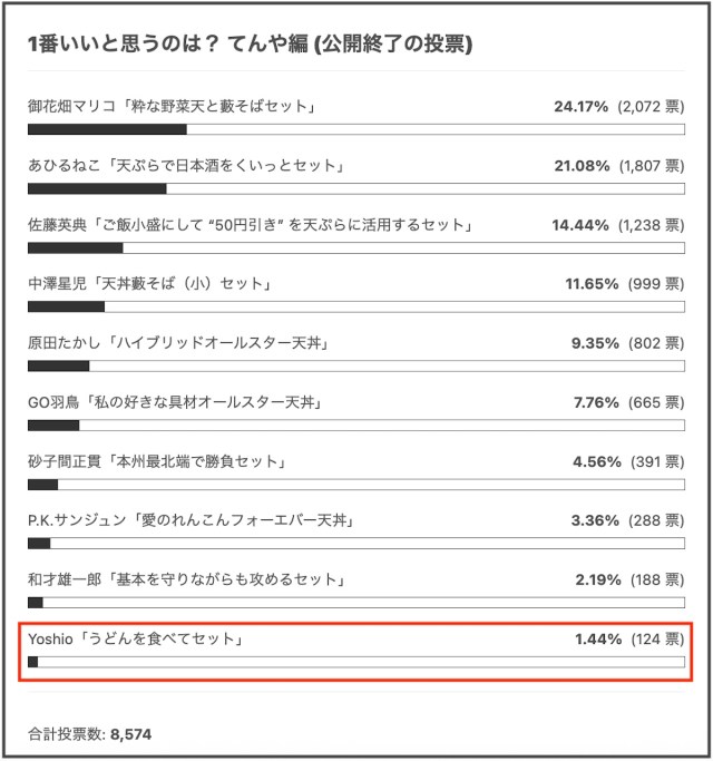 しかも読者投票でダントツの最下位である。メジャーの域に達していないどころか、うどんの存在が全然認知されていないのかもしれない。