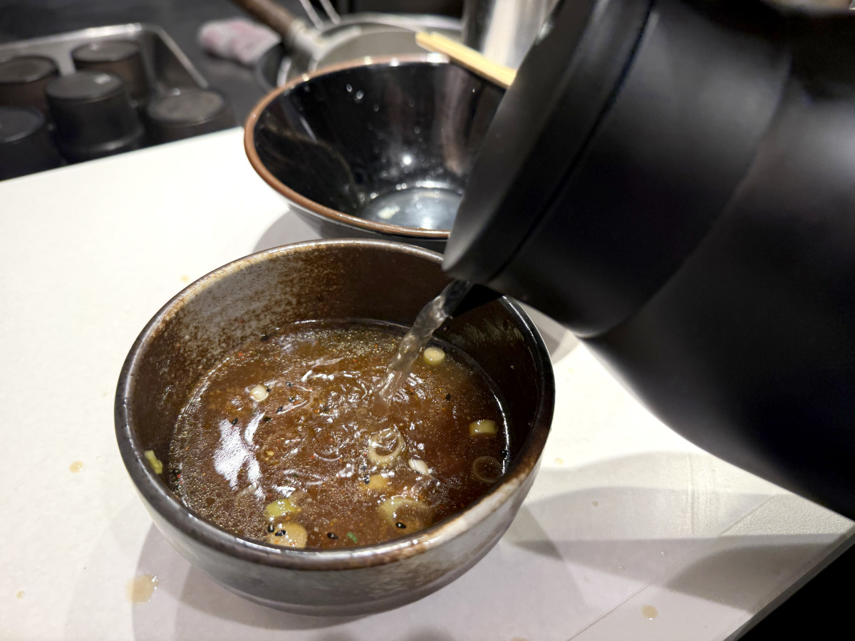 替え玉は注文後2秒でやってくる “わんこそば形式” で、中には「半分」で注文しているお客さんもいた。終盤に卓上の出汁でつけ汁を割って飲めば、大満足で店を後にできることだろう。