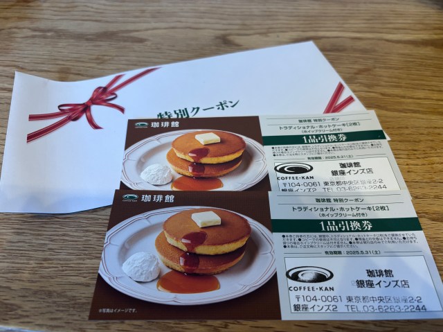 【福袋2024】『珈琲館』は敢えてのドリンクチケットなし! でも、ホットケーキ引換券(ホイップクリーム付き)が付いて来る!!