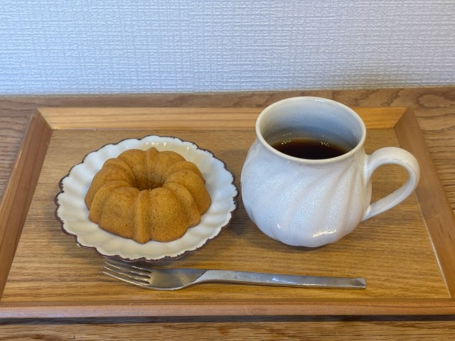 「塩キャラメルリングケーキ」はキャラメルの甘さとほのかな塩味が美味! かなりしっとりした食感なんだけど、10秒くらいチンしたらふわふわになって美味しかった。ブレンドと合う〜。