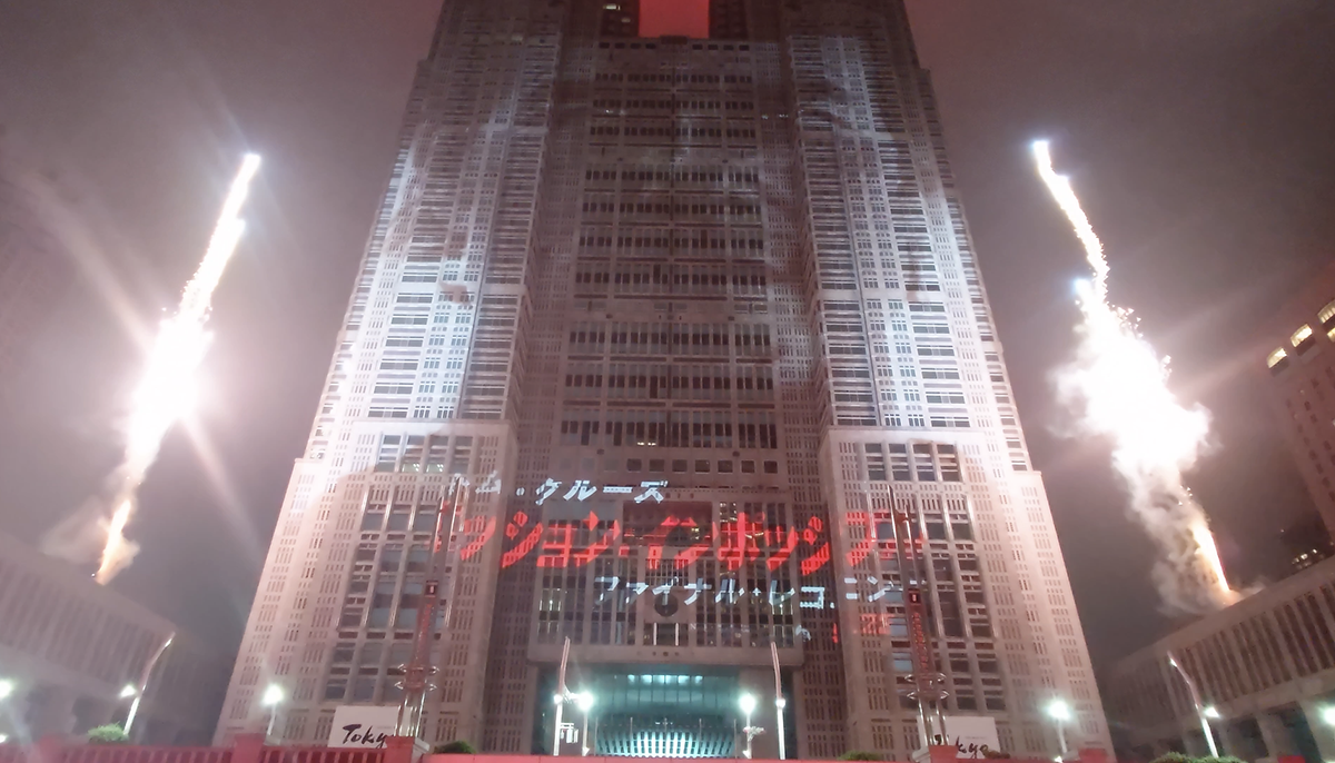 こうして全員が揃い、最後は都庁をスクリーンに映画のプロジェクションマッピングと、花火でフィニッシュ。