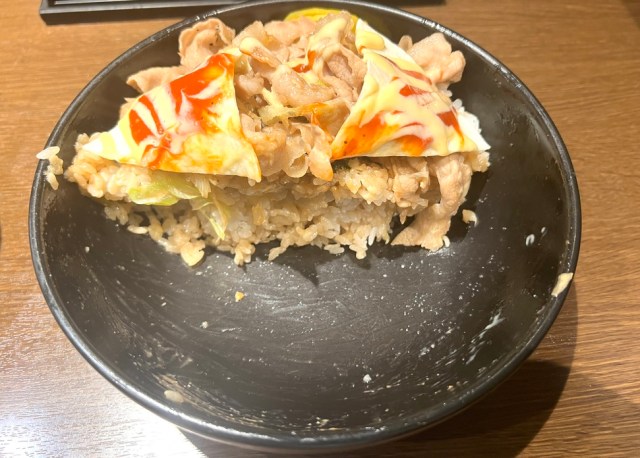 さらに、米とピザ生地を同時に頬張るという “炭水化物の狂宴” も、意外と違和感なく楽しめる。トマトソースの酸味とチーズの塩気が、すた丼特有のニンニクの風味と意外にも喧嘩せず、むしろ互いを引き立て合っている。