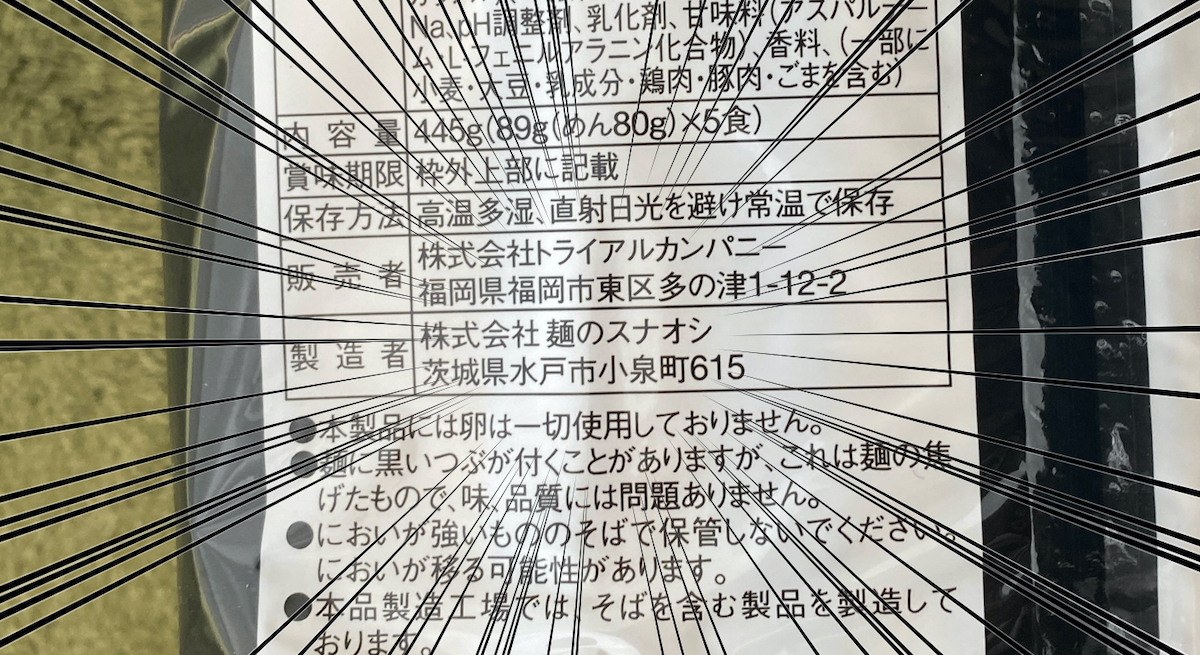 とんこつだけはトライアルカンパニー販売で、製造は茨城の「麺のスナオシ」だったのだ。てっきり全部同じだと予想していただけにこれは意外……!