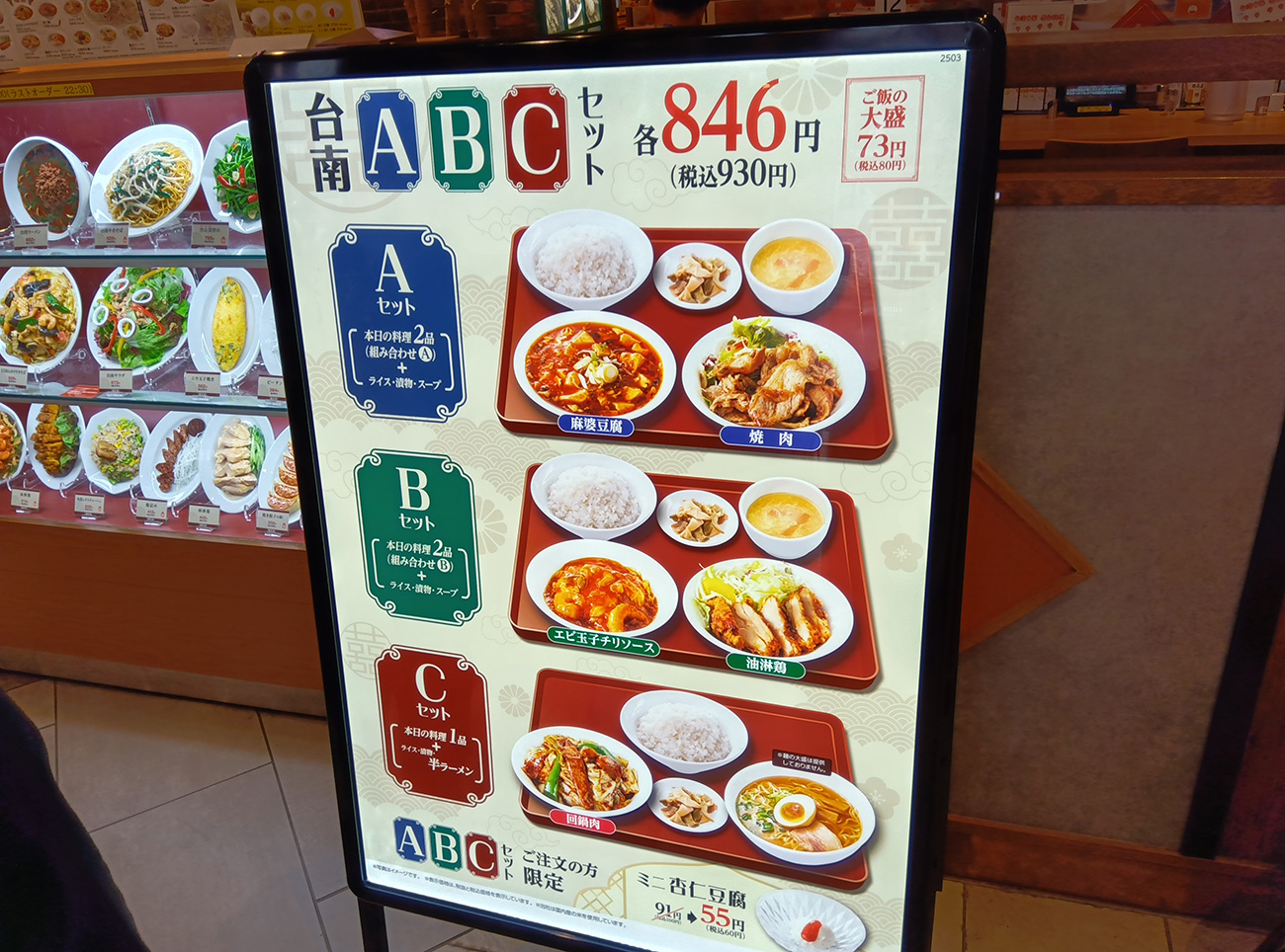 また、台南セットという定食的セットもあるようだ。A、B、Cの3種類のセットから選べて税込846円だから、ランチとかに良さそうである。