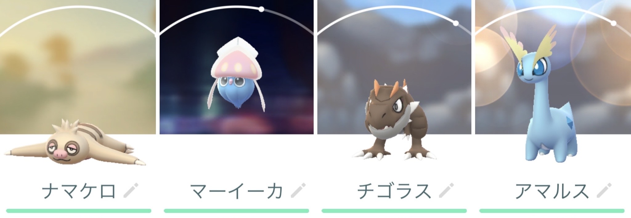 さあ、今回の占拠イベントで初のシャドウ化となってしまうポケモンは「ナマケロ」「マーイーカ」「チゴラス」「アマルス」の4種類。まずは全てのポケモンを救出し、ライト図鑑を埋めておこう。