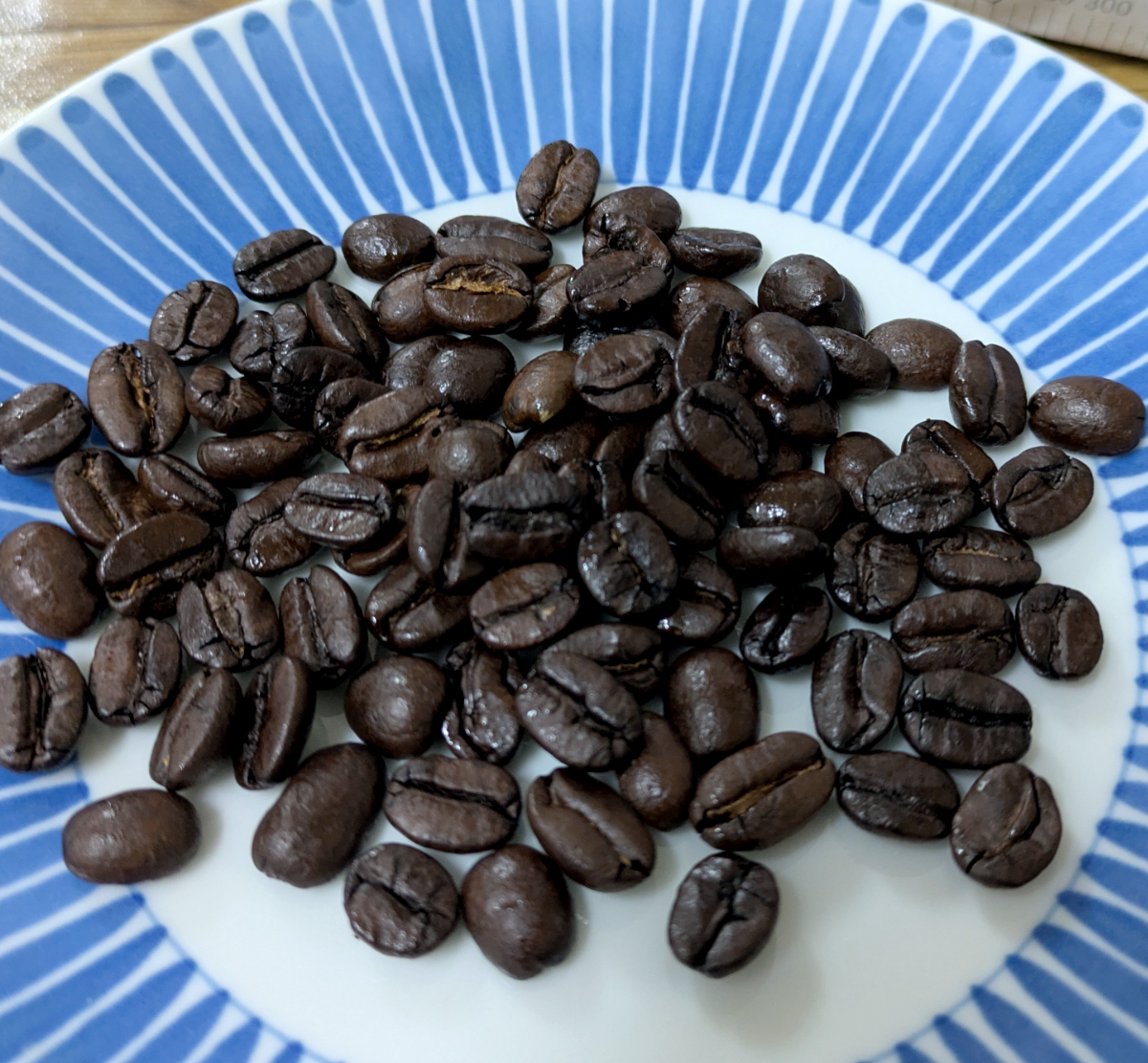 【写真】直火焙煎の豆は色が濃く艶やか